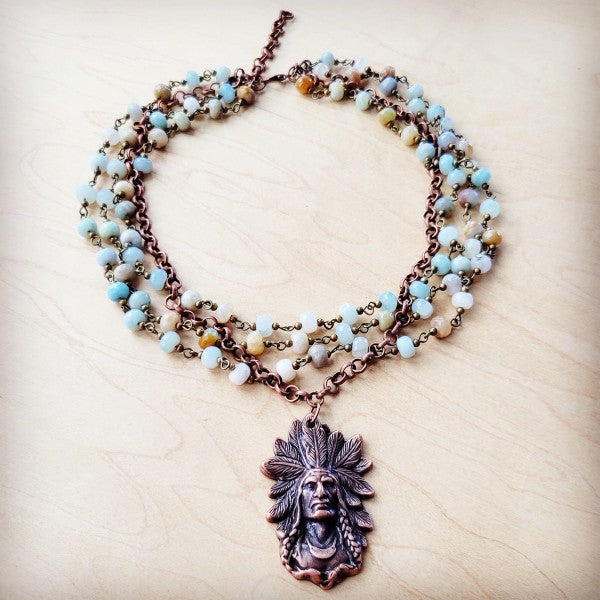 Amazonite Beaded Collar Necklace w/ Indian Pendant