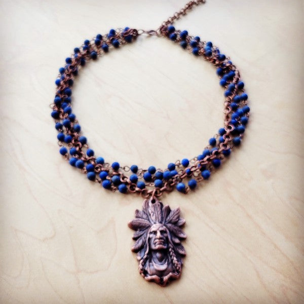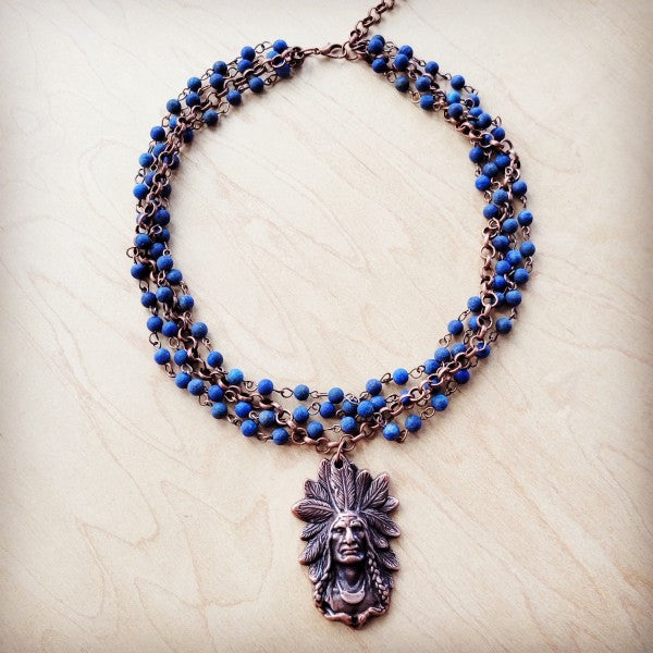 Blue Lapis Beaded Collar Necklace w Indian Pendant