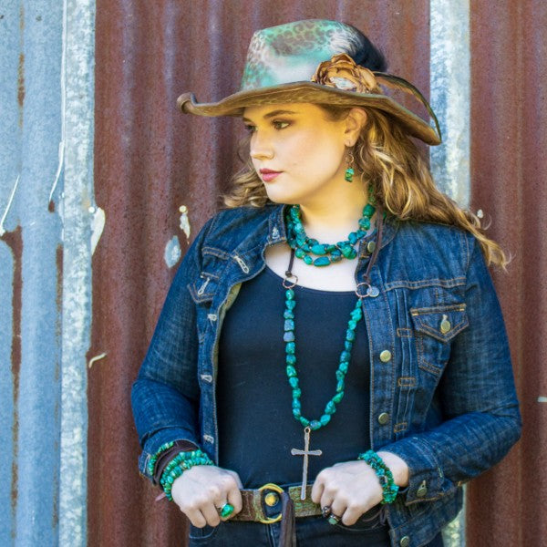 Expertly crafted with three strands of genuine turquoise and copper, this boho western necklace adds the perfect touch of natural beauty to any outfit. Each unique stone makes a one-of-a-kind statement. Dare to stand out with the Large Triple Strand Natural Turquoise Copper Collar Necklace.