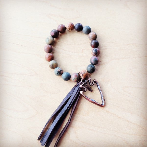 Picasso Jasper Bracelet w Leather Tassel/Arrowhead
